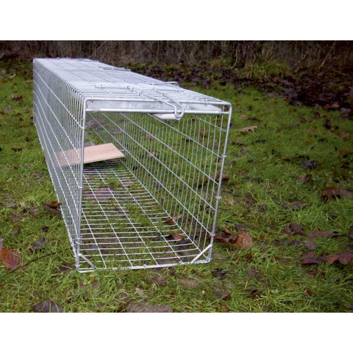 Leichte Falle für den Fang von Marder, Jungfuchs und Kaninchen.Gewicht: ca. 3 kgAußenmaß: ca. 100 x 20 x 25 cmDurchlaufmaß: ca. 19 x 23 cm