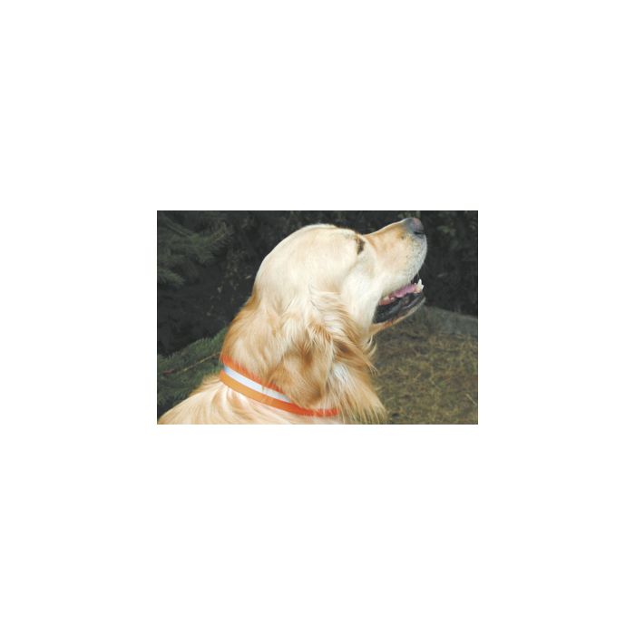 Signalhalsung 3,5 cm breit.Länge 55 cm mit 1 Reflektorstreifen.Verschlussart Schnalle.